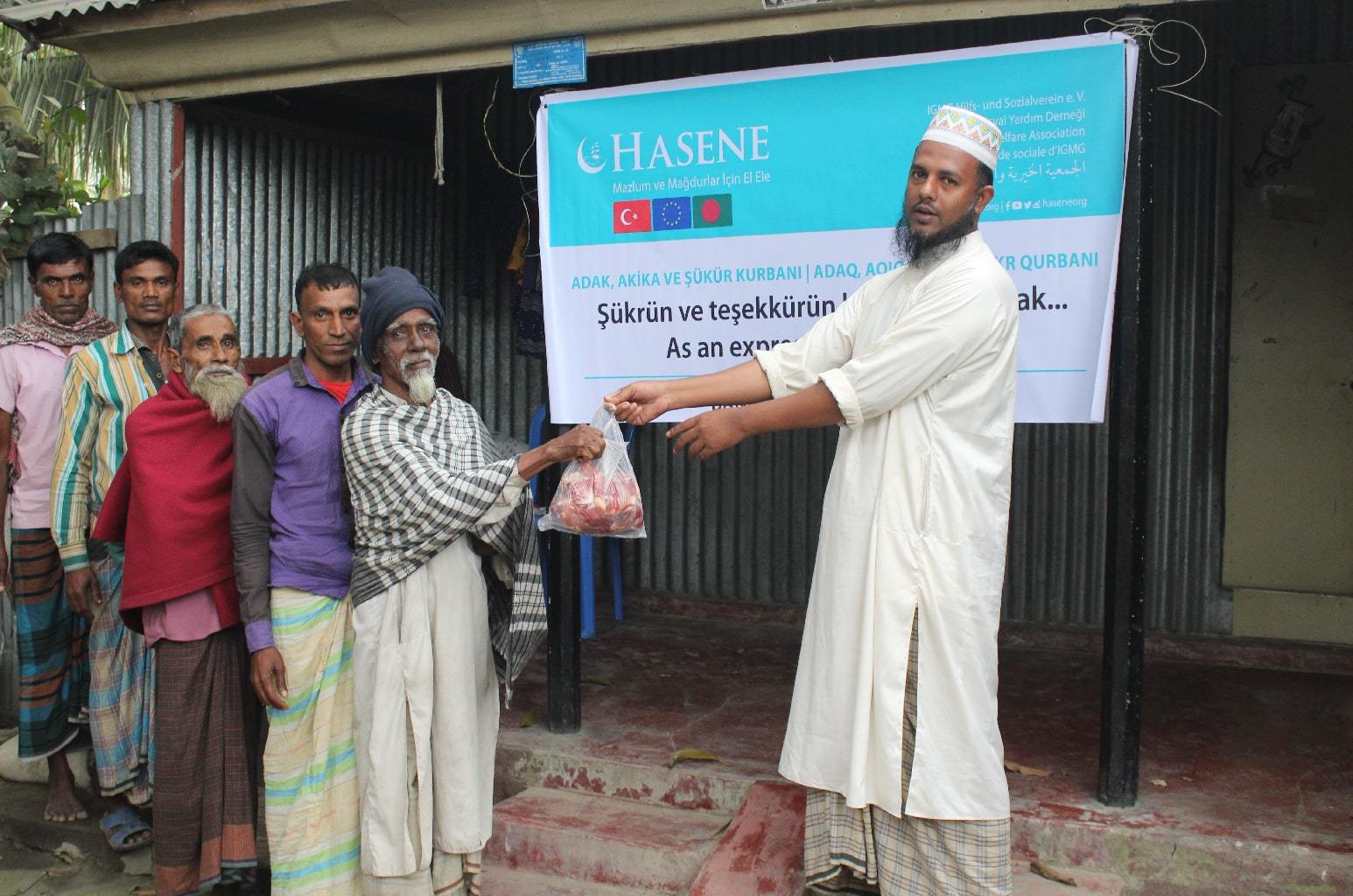The word “Qurban” appears thrice in the Quran: once in reference to animal sacrifice and twice referring to sacrifice in the general sense of any act which may bring one closer to God. Every year, during Eid al-Adha, Muslims around the world slaughter an animal – typically a sheep, goat, camel or cow – to commemorate the Prophet Ibrahim and his ultimate sacrifice. Meat is an important source of vitamins and minerals. In many developing and emerging countries, however, it is an almost priceless luxury for many people. According to the United Nations’ Food and Agriculture Organization, annual per capita consumption is 4 kg in Bangladesh, 4.4 kg in India, and 6.3 kg in Sri Lanka. In African countries, the consumption is only slightly higher at 7.8 kg in Mozambique, 8.1 kg in Gambia, 8.8 kg in Nigeria and 9.6 kg in Tanzania. With the Qurban campaign, Hasene International reaches the needy in 100 countries in the world for this important worship service by distributing the Qurban shares. Every year we are active in over 100 countries worldwide to distribute the meat of the donated Qurban shares.